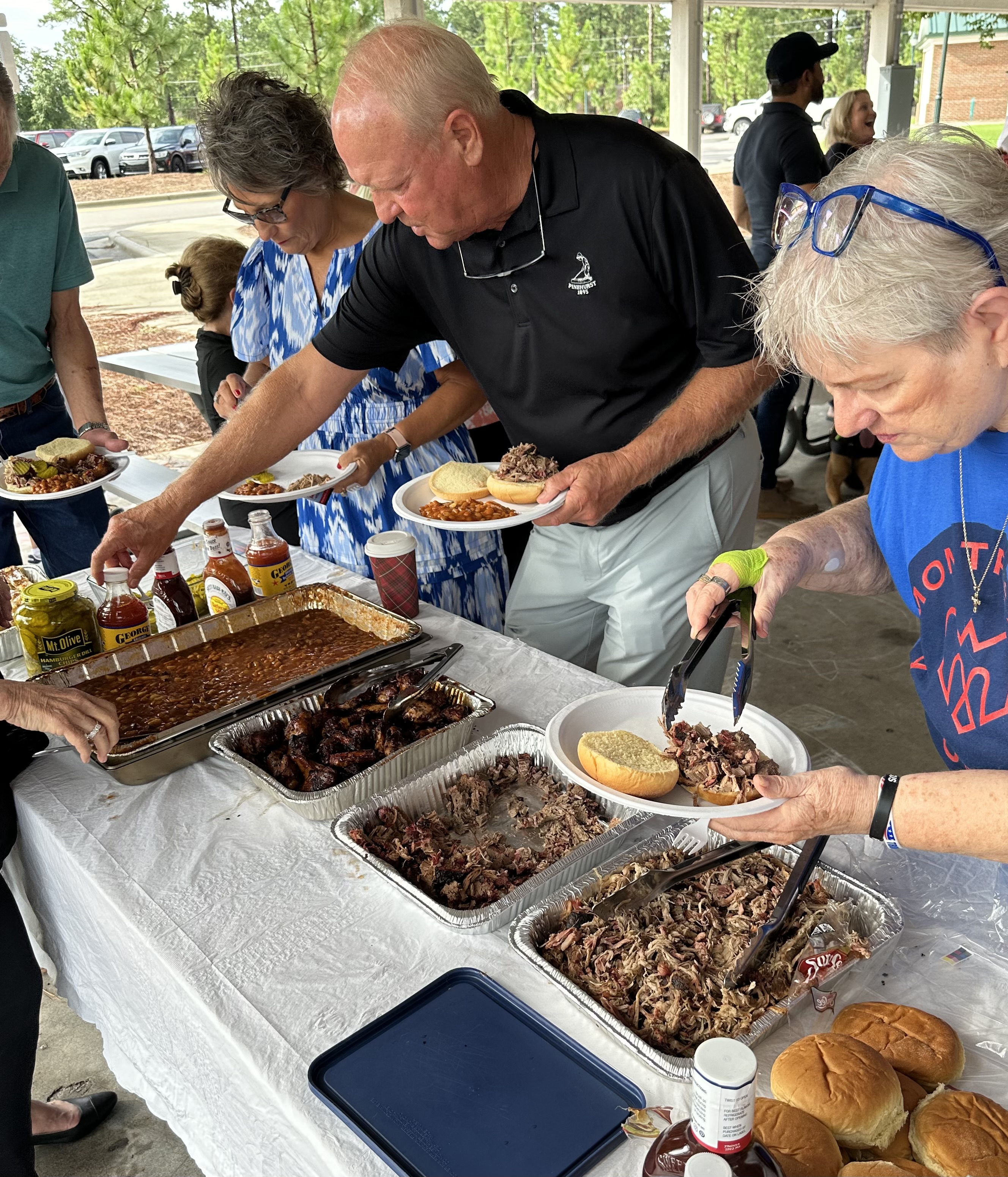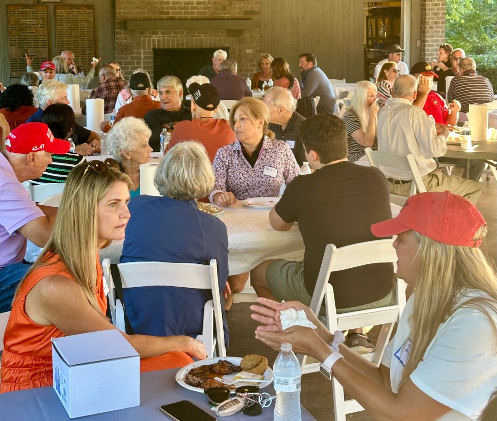 The clouds parted and brilliant sunshine erupted overhead just as the We The People Caucus BBQ Kickoff event began on July 25, 2024, at Pinehurst’s Cannon Park. Dinner followed by forward looking presentations attracted about 80 Moore County conservatives. Guests were challenged to identify five area citizens to accompany them when we convene again in September. Date TBA. (Thanks to the Sultan of Smoke, David Hensley, for providing authentic smoked pulled pork, beef brisket, chicken wings and decadent baked beans. Everyone depart nourished and inspired).